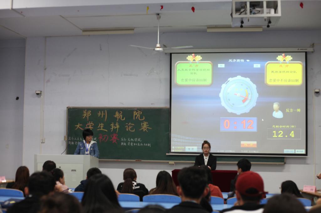 4月25日晚,我校在05B301举行郑州航院大学生辩论赛辩论赛初赛。人文社会科学学院和民航学院学院分别作为正反双方参加了此次辩论赛。best365学生彭希、刘劲超、康佳和谭佳鑫作为正方辩手参加此次辩论赛。