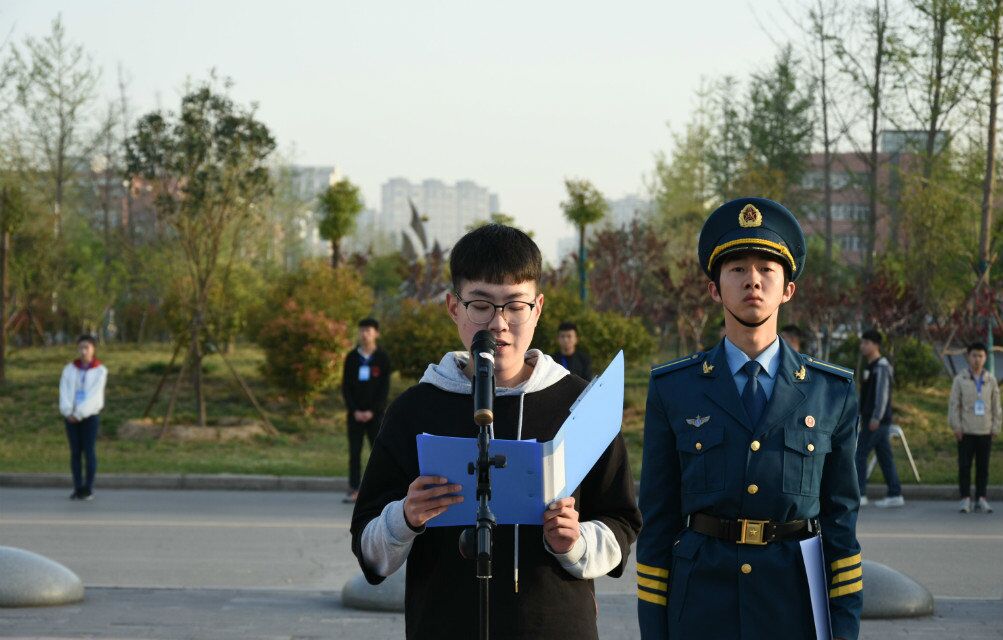 7点整,国旗班护送鲜艳的五星红旗入场,伴随着庄严的《中华人民共和国国歌》,五星红旗冉冉升起,迎风飘扬。在场的每个人面向国旗行注目礼,满怀对祖国的无限热爱。随后,best365学生代表2017级杨家森上台做了《发扬十九大精神,做合格郑航人》的主题演讲,勉励大家要在实践中践行十九大精神,紧跟党的步伐,在中国共产党的领导下,做一名优秀的大学生。