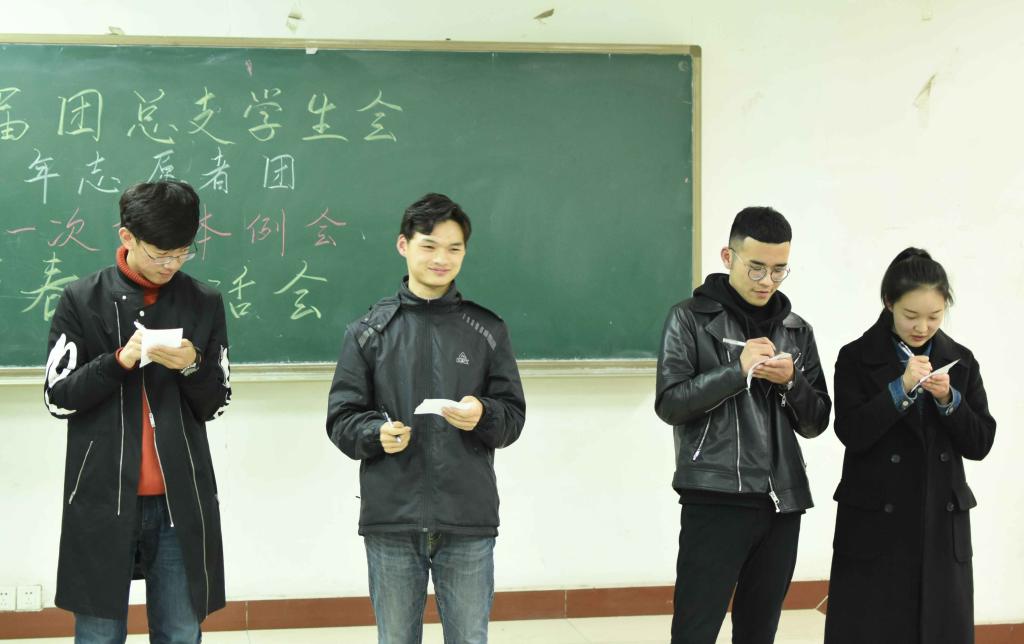 会议伊始,主席刘东瑞表达了对大家的新春祝贺。接着交代了新学期的工作,同时要求各部成员要端正态度,新学期,新气象,拿出干劲,为更好的发展贡献自己的力量。其次,刘东瑞宣布best365成立青年志愿者团。然后,部门代表上台发言,讲述自己在寒假的心得体会。让我们认识到寒假工的辛苦,懂得了在今后的日子里应更加认真学习。例会结束,茶话会在欢乐的氛围下开始,主持人介绍规则后,便进入了游戏环节,在惩罚环节现场进入高潮。最后,此次茶话会在男生的歌声中结束。