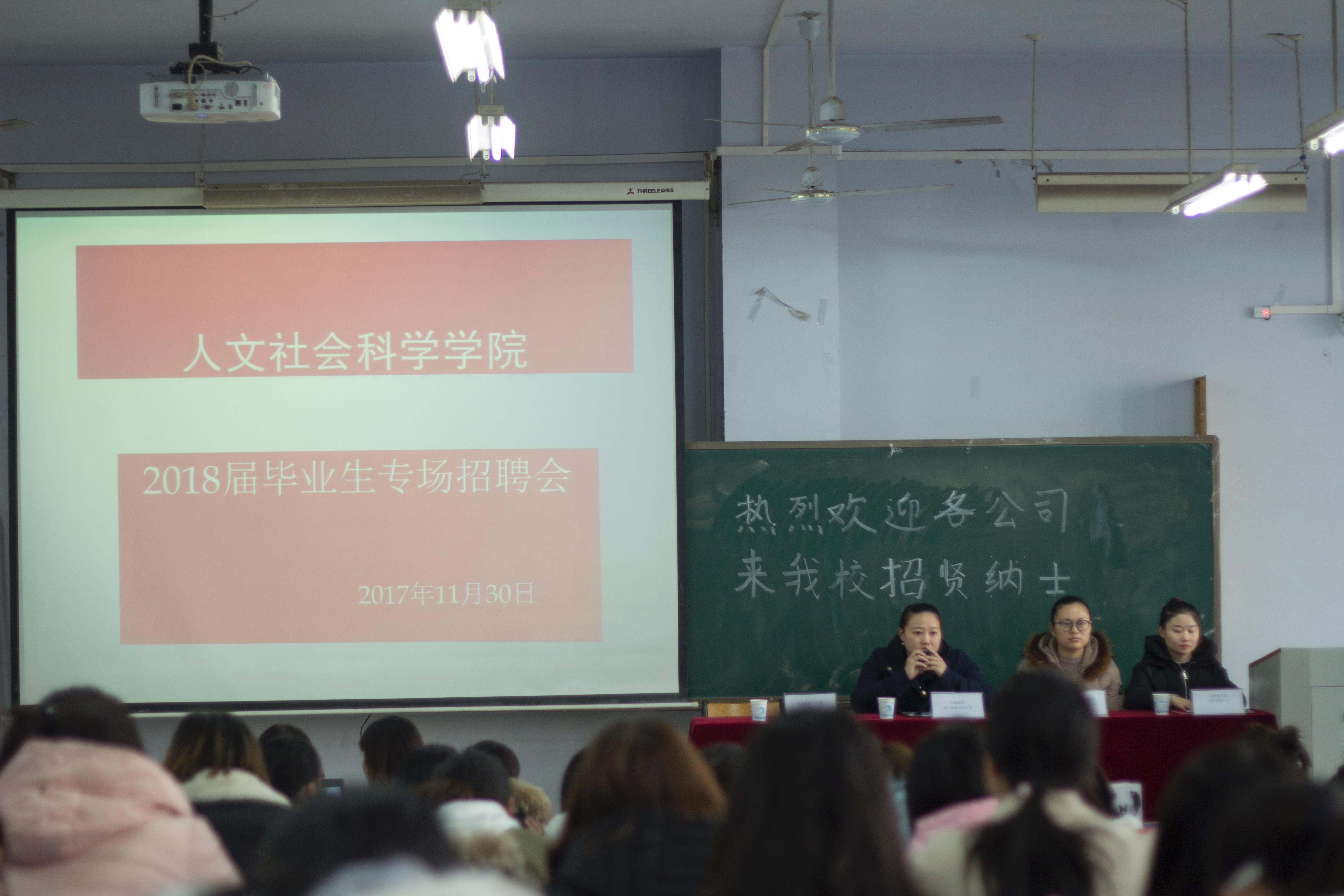 11月30日下午,人文社会科学学院在教室07A201举行了2018届毕业生专场招聘会。此次招聘会共有四家企业参与,分别是:百威英博(中国)销售有限公司、河南盈邦电子商务有限公司、郑州市常春藤智囊企业咨询管理有限公司、郑州优派通科技有限公司。除各公司负责人外,best365党总支副书记李达 、何伟老师也出席了本次招聘会。此次招聘会由何伟老师主持。