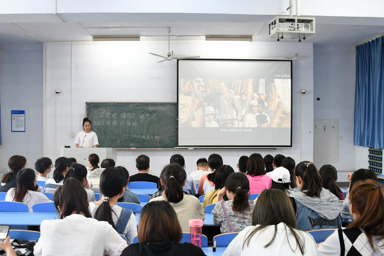 best365分团委书记尚福星深入各班团支部了解活动开展情况,并于5月8日下午参与中文一班“学党史、强信念、跟党走”五四主题团日活动。首先,中文一班团支书彭婕带领大家共同学习“读懂习近平在清华大学考察时的重要讲话”,就“3个伟大、6个‘要’和做好3种人”三个方面展开讲解,并对现场学生提出如何勉励新时代中国青年建功立业的问题。她在讲解中高度评价五四运动的历史意义,鼓励新时代中国青年肩负民族使命,确保党的事业薪火相传,以习近平的讲话为重要纲领,将讲话内容列为重要内容,以史为鉴、吸取经验,深入贯彻习近平总书记在清华大学考察时的重要讲话精神,不断地用党的理论武装青年头脑,在实干中成就一番事业。