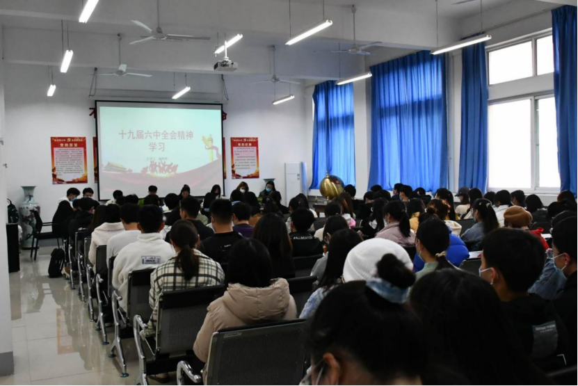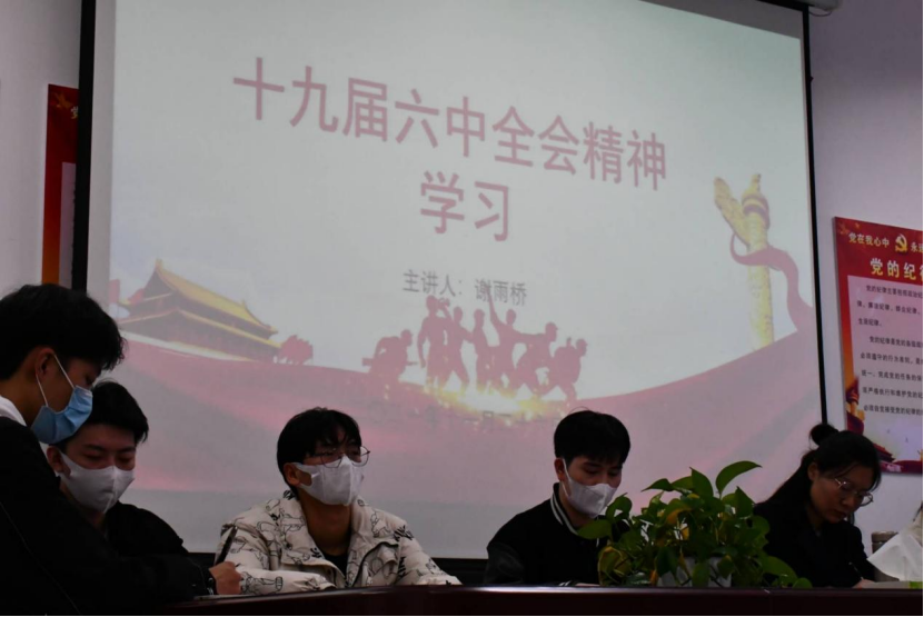 为深入学习贯彻“党的十九届六中全会精神”,增强当代青年学生党的意识,加强党性修养,充分展示党的先进性,更好地与时俱进,best365中国官方网站于2021年11月26日下午在05B417教室开展“党的十九届六中全会精神”领学活动,由best365中国官方网站分团委学生会主席团成员谢雨桥带领同学们学习“党的十九届六中全会精神”。
