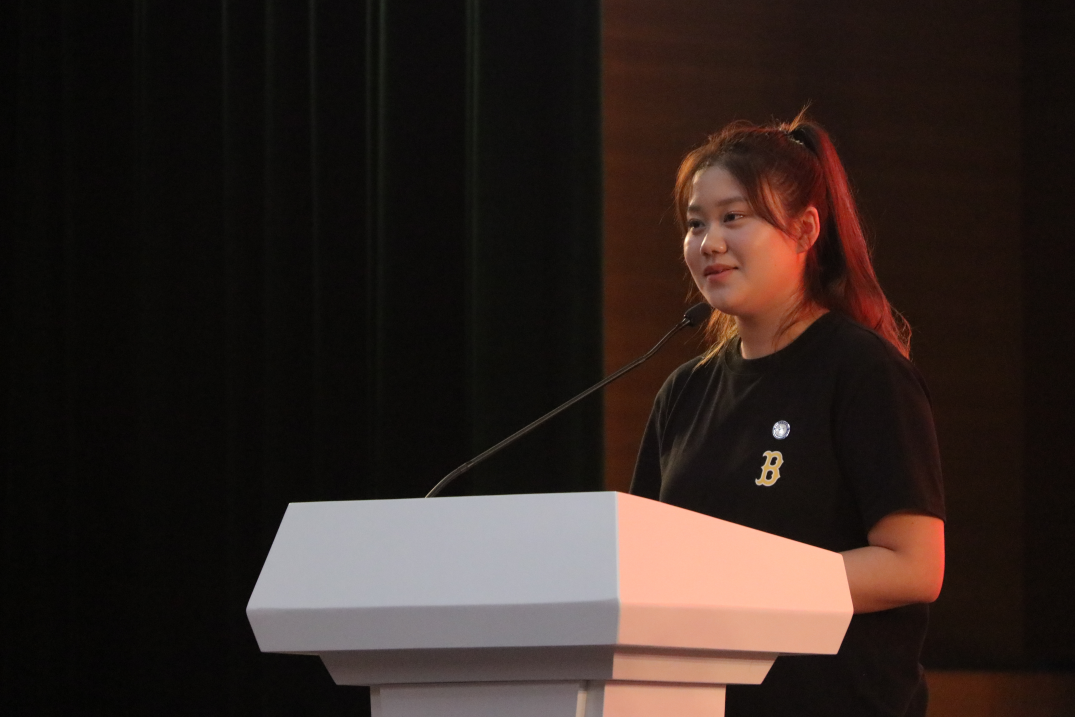 院党委副书记郭之茵以“如何开启大学生活”为主题展开发言,提出钻研学习的方法课、努力奋斗的人生课和学会相处的社交课,引导新生在大学生活中培养优良学风、增强安全意识、牢记校规校纪,成就更美好的自己。