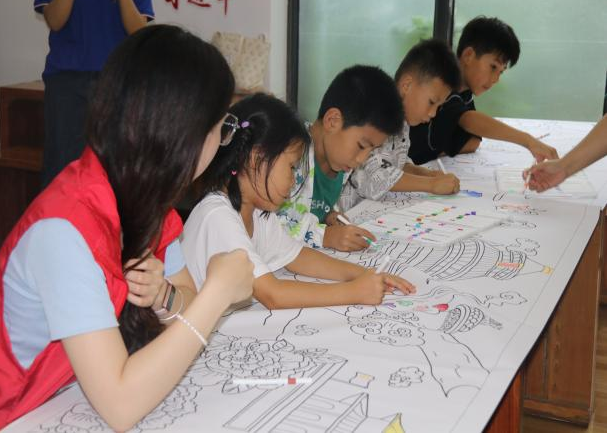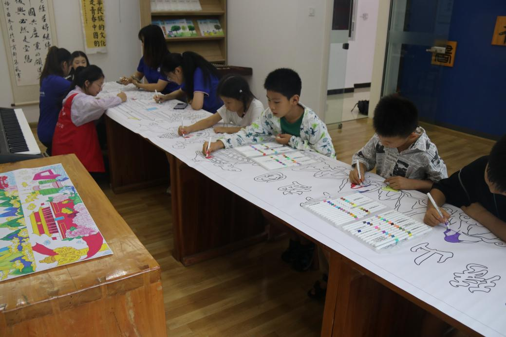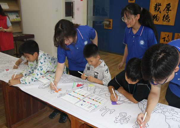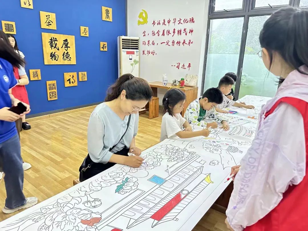 活动现场,长长的画布一字排开,两侧挤满了大家积极的身影,在团队成员与志愿者们的悉心指导下,他们用五彩斑斓的画笔精心绘制,尽情涂抹挥洒。大家共同围坐在桌前,让色彩舞动呼应心灵,充分发挥自己的想象力和创意。鲜艳的五星红旗,雄伟壮丽的天安门、色彩缤纷的气球……在温馨、和谐的氛围中,一幅幅栩栩如生的画面逐一呈现。此次绘画体验活动旨在能够给大家带来快乐的情绪体验,增进自信,舒缓负面情绪,提高青少年的综合素养。