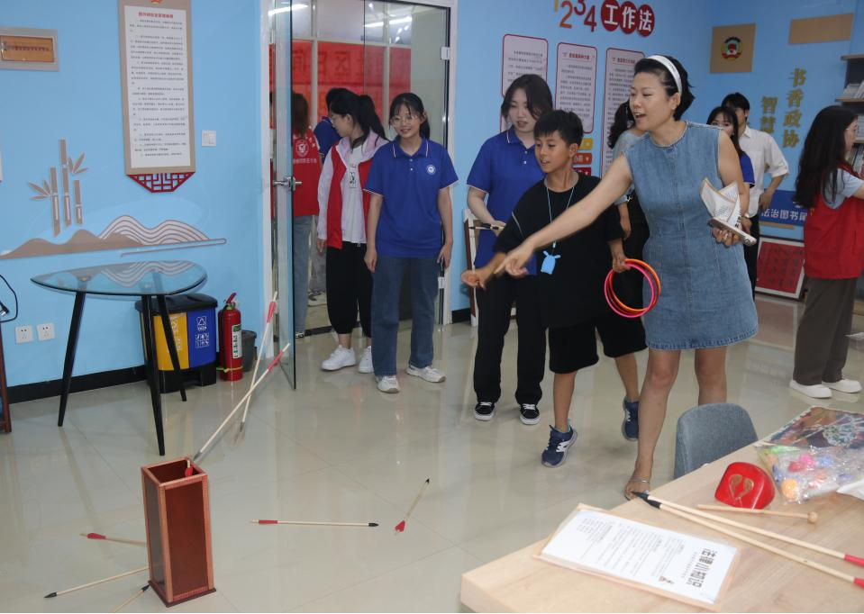 接下来,实践团的成员和志愿者们,一同引导青少年积极参与拼飞机、投壶、套圈等心理趣味游戏,让青少年在轻松愉快的氛围中接触到心理健康的相关知识,增强对心理健康问题的认识和关注,提升心理健康意识。同时心理趣味游戏通过其独特的趣味性和互动性,释放了青少年内心的压力和紧张情绪,使其身心得到了愉悦与放松。