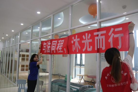 随后,实践团的成员和志愿者们以“与法同程,沐光而行”为主题开展普法宣传活动。通过发放法律知识宣传页和设立公益法律“问诊”等方式,围绕着法律是什么以及怎样规范自己行为、自我保护要领等方面给社区居民普及应知应会的法律知识,提高大家的法制素养,让社区居民能够知法懂法用法。