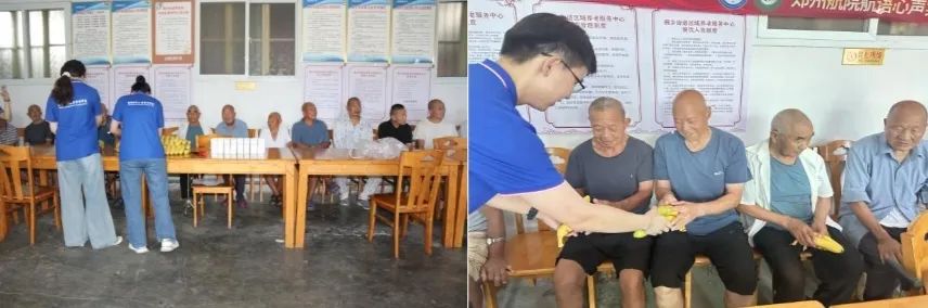 实践团还精心准备了各种食物与营养品,带来了水果和牛奶等物资。成员们手捧精心准备的小礼品,一一送到老人手中。这些礼品或许并不昂贵,但却承载着每位成员深深的祝福与关爱。老人们在收到礼品时,脸上绽放出幸福的笑容,心中充满了感激与温暖。他们知道,这些礼品不仅仅是一份物质上的馈赠,更是青年一代对老年群体精神上的支持与陪伴。