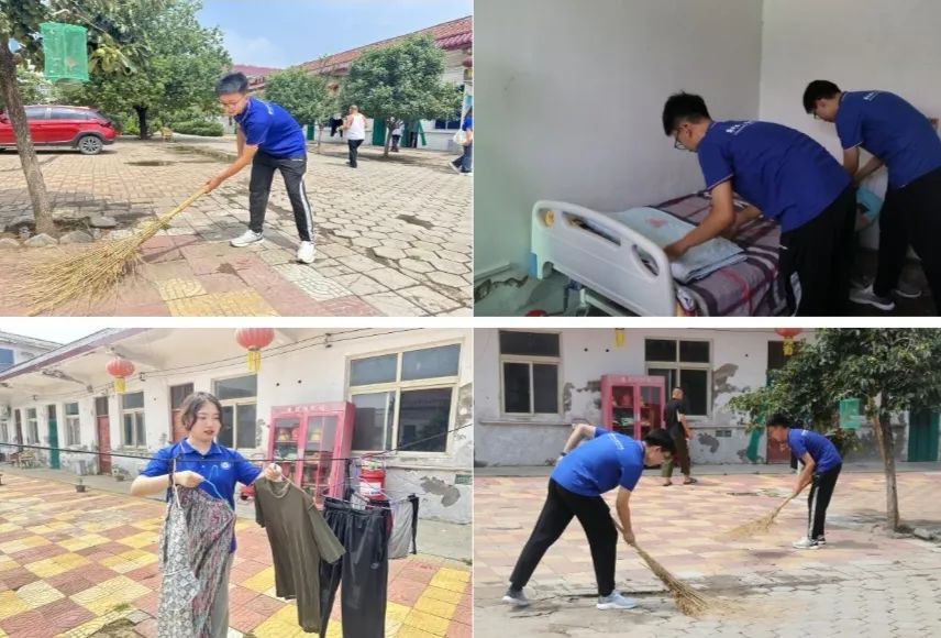 同时,为了帮助老人营造一个更加整洁、舒适的生活环境,成员们对敬老院进行了全面的清扫工作。他们拿起扫帚、抹布,从走廊到房间,从庭院到厨房,认真打扫每一个角落,还将院内晾晒的床单细心收起,折叠整齐后放回老人们的房间。
