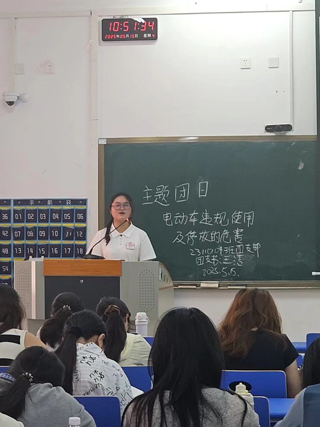 活动期间,各团支部创新教育形式,多维度筑牢校园交通安全防线。团支书们通过共享文件与PPT、组织观看专题讲座、典型案例分析等多种方式开展教育,系统阐释电动自行车安全使用规范以及违规使用、停放行为的风险隐患。同时,各支部精心制作图文并茂的宣传手册、警示海报等资料,营造全域覆盖的安全宣传氛围。此外,围绕“电动自行车规范使用与停放”主题,团员青年结合校园生活实际,就违规载人、私拉电线充电等高频违规行为展开研讨,通过真实事故案例与数据解读强化安全认知,并在互动交流中凝聚共建安全校园的行动共识,推动理论学习向实践转化。