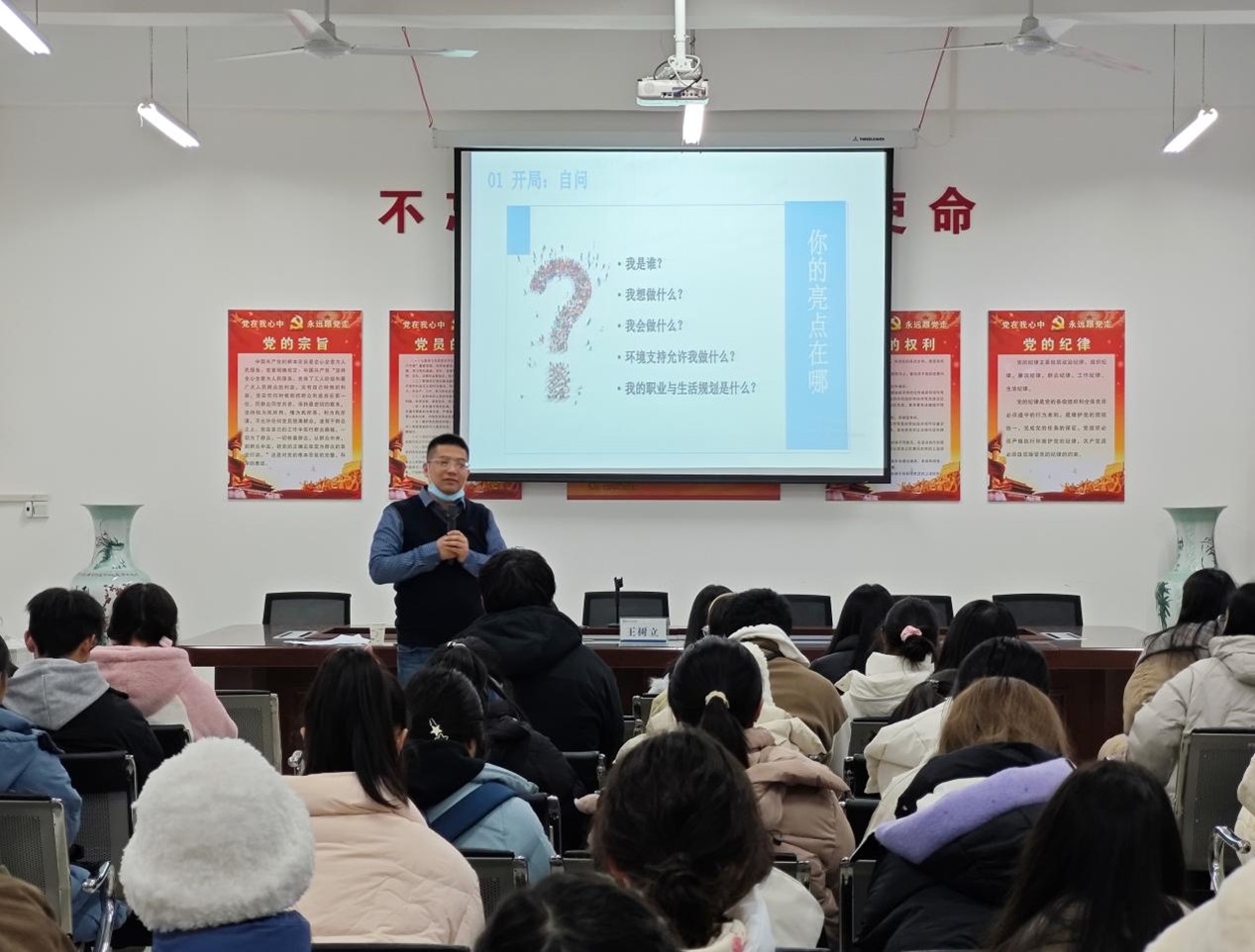 12月14日下午,best365中国官方网站在05B417开展“大学生职业生涯规划”的专题讲座。讲座邀请09届行政管理专业优秀毕业生王树立为同学们进行指导。best365中国官方网站100余名学生参加。讲座由党委副书记郭之茵主持。