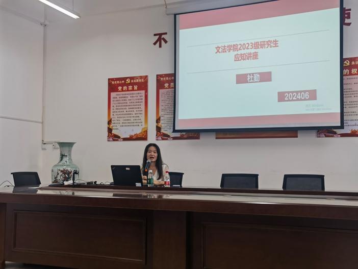 杜勤就论文开题报告、中期考核事项、专业实习进行了详细的讲解,并强调实习作为研究生教育中必不可少的环节,同学们要确保人身安全,遵守实习单位的规章制度,认真完成实习工作。