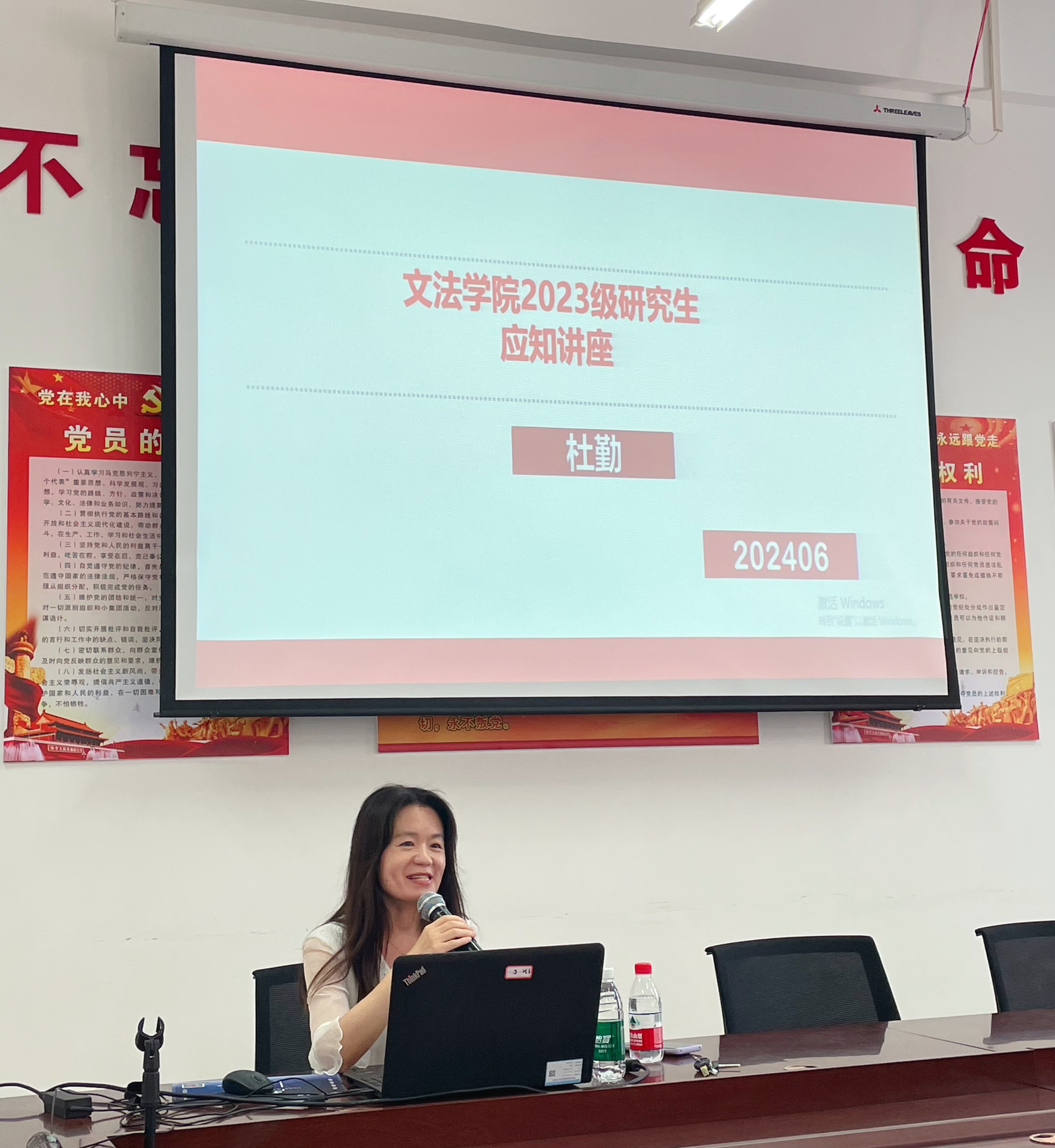 杨志敏就实习期间的具体安排、注意事项及安全管理等方面进行了详细说明。由于汉语国际教育专业的特色,有一部分同学到海外顶岗实习,其余同学在国内实习,在实习要求上存在差异,因此,杨志敏分别就实习报告的撰写、实习成果的展示以及实习期间的心得等注意事项进行了指导。强调了实习期间的注意事项,要求学生在实习过程中保持高度警惕,确保财产安全和人身安全。